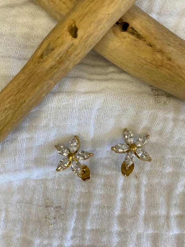 Clous d'oreilles dorés Fleur Zircon Marquise en acier inoxydable