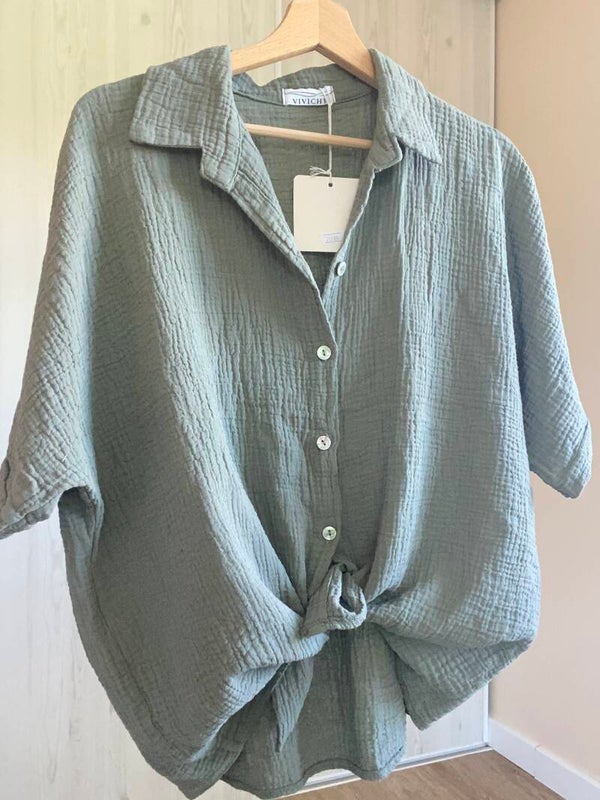 Chemise Kaki en Gaze de coton manches courtes Taille unique 36-42