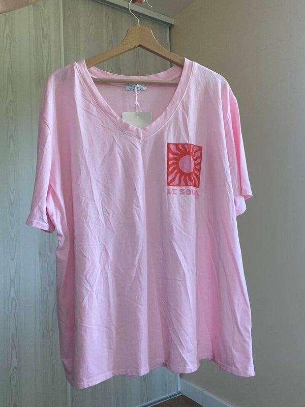 T-shirt Soleil rose clair en Grande Taille unique (42-48) Coton 90%, Elathanne 10%